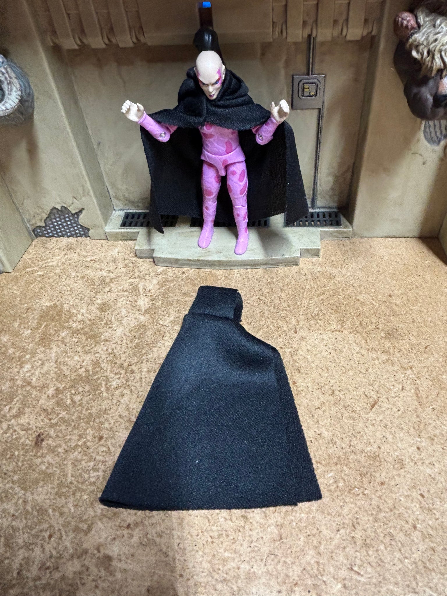 You will receive 1 custom black Pythona cloak.  Figure is not included, you are only purchasing the cape.